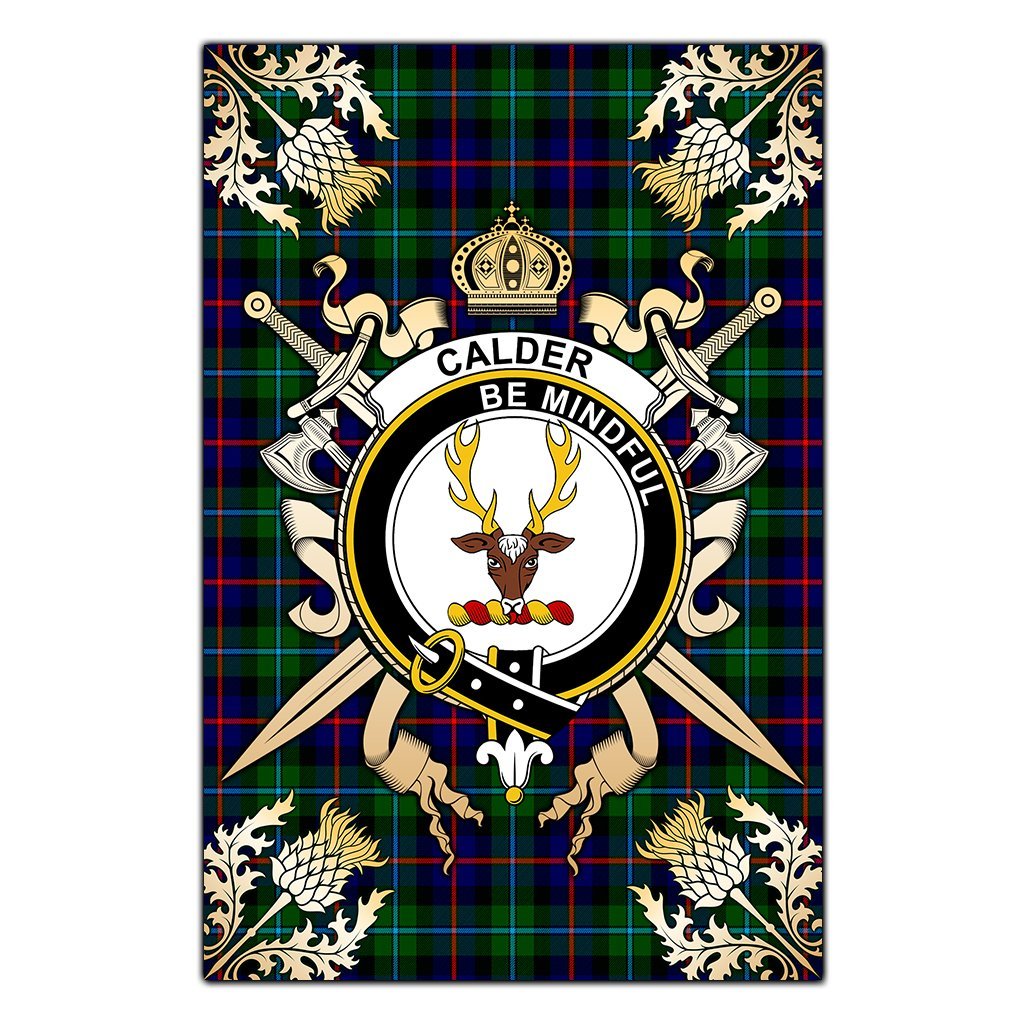 Calder Modern Tartan Crest Black Garden Flag - Gold Thistle Style