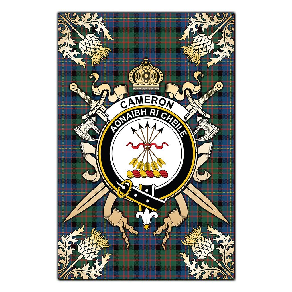 Cameron Of Erracht Ancient Tartan Crest Black Garden Flag - Gold Thistle Style