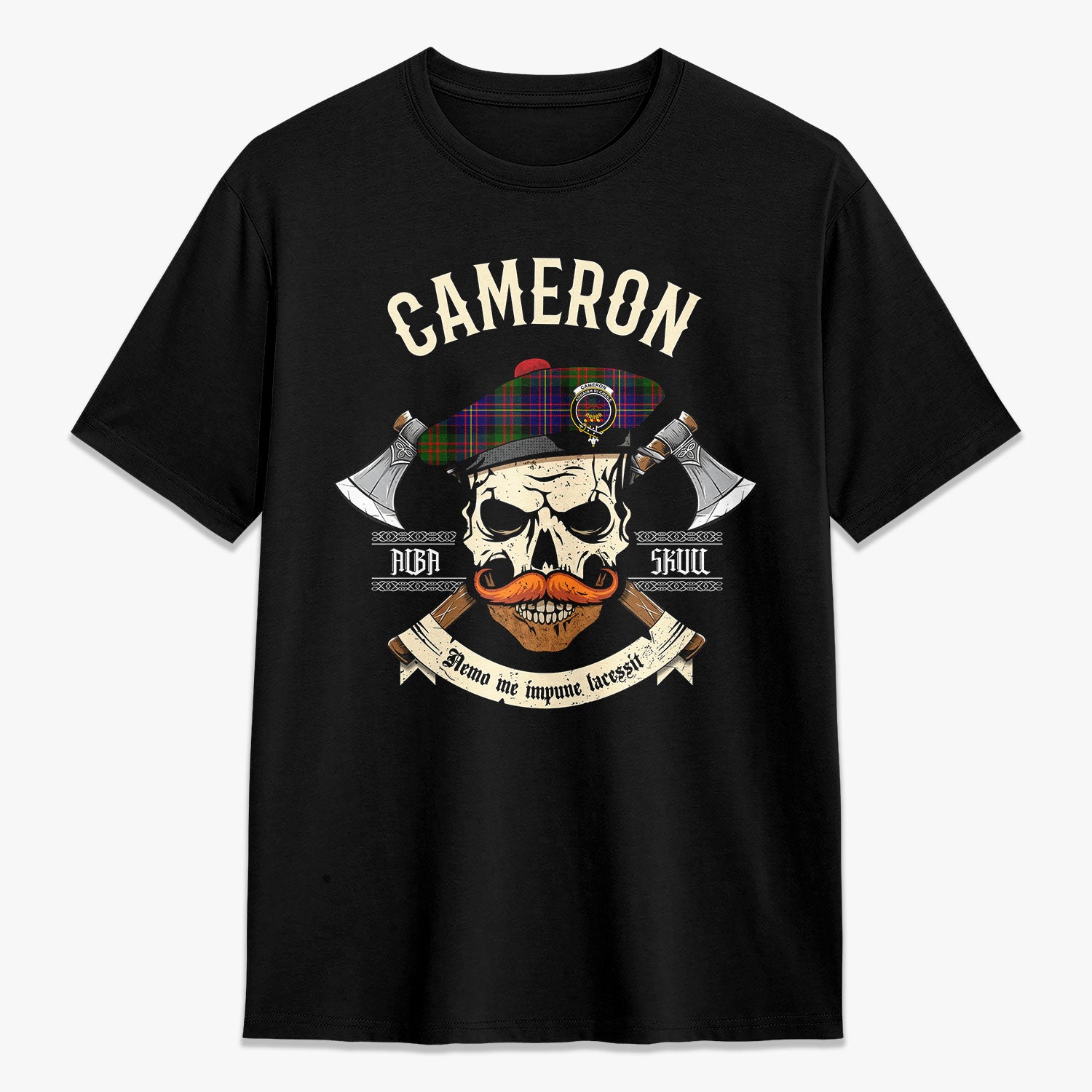 Cameron of Erracht Modern Tartan Crest 2D T-shirt - Alba Skull Style,
