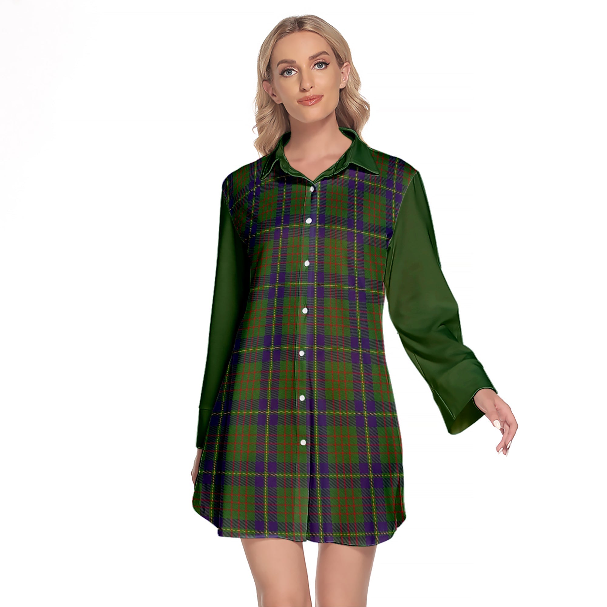 Cameron Of Lochiel Hunting Tartan Women's Lapel Shirt Dress With Long Sleeve