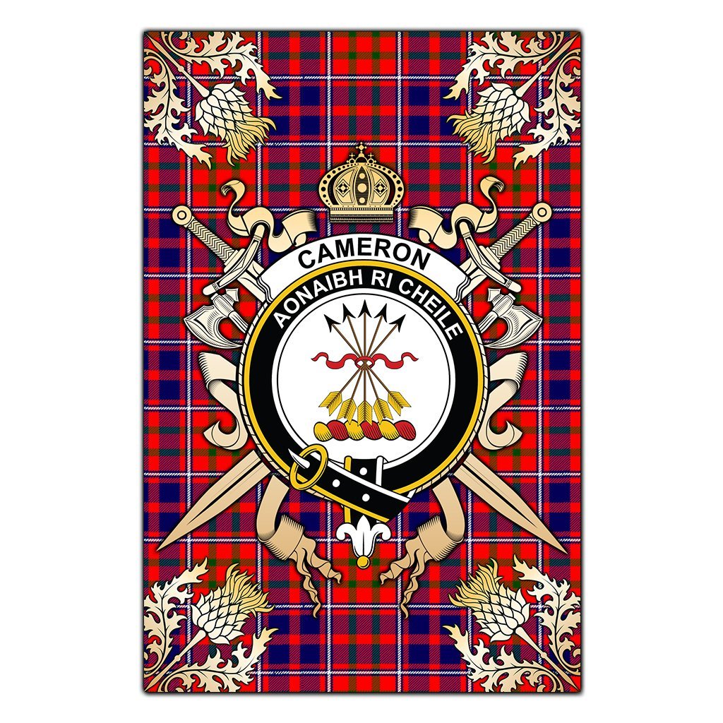 Cameron Of Lochiel Modern Tartan Crest Black Garden Flag - Gold Thistle Style