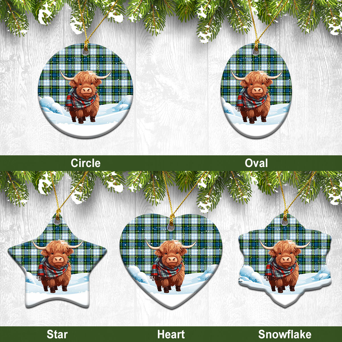 Campbell Dress Tartan Christmas Ceramic Ornament - Highland Cows Snow Style
