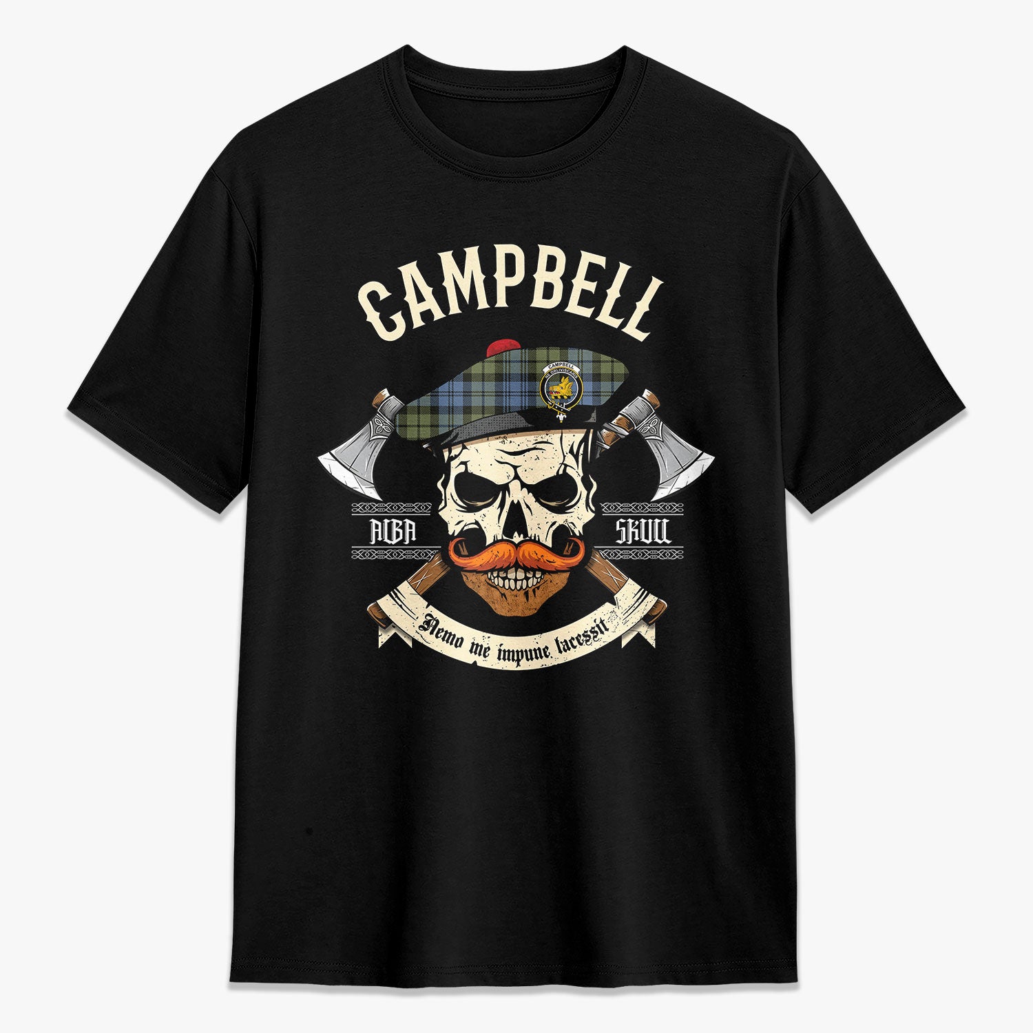 Campbell Faded Tartan Crest 2D T-shirt - Alba Skull Style,