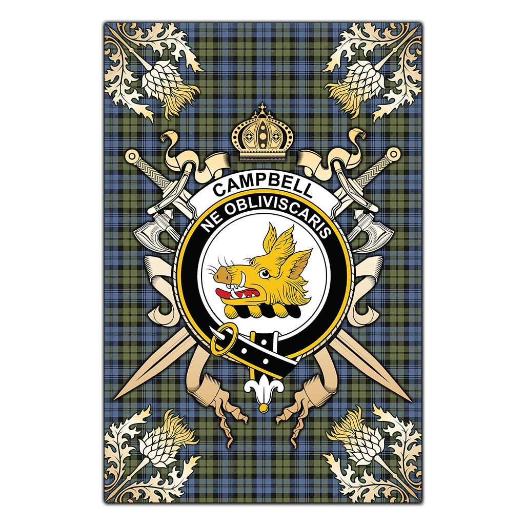 Campbell Faded Tartan Crest Black Garden Flag - Gold Thistle Style