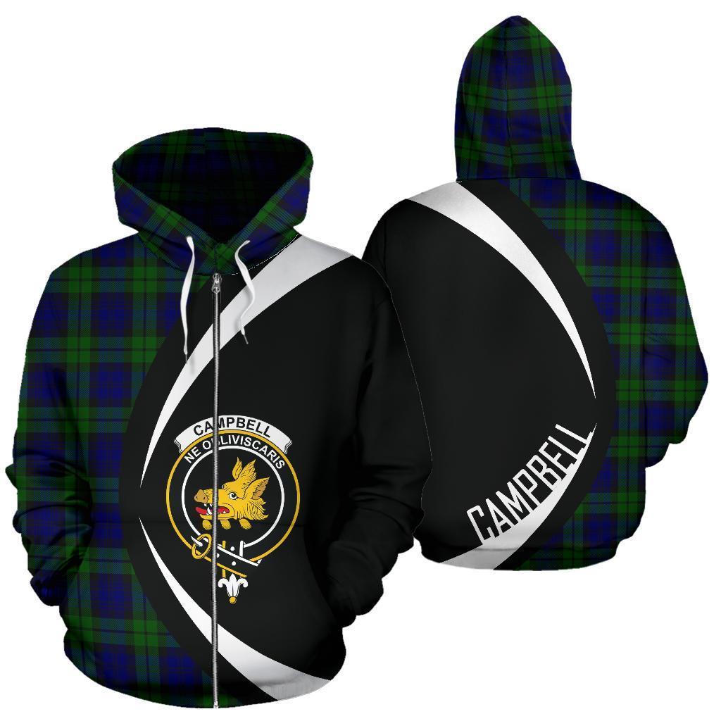 Campbell Modern Tartan Crest Zipper Hoodie - Circle Style