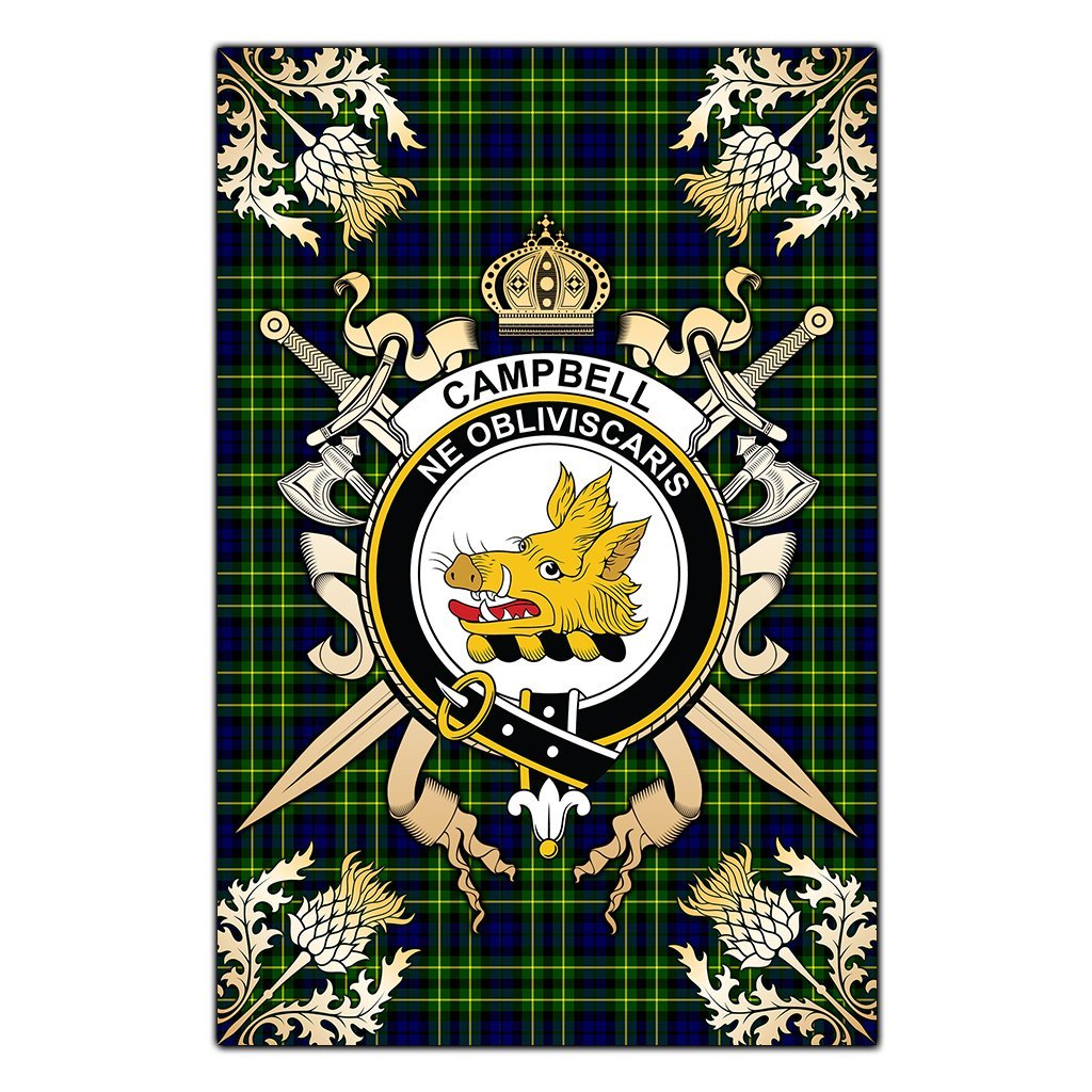 Campbell of Breadalbane Modern Tartan Crest Black Garden Flag - Gold Thistle Style