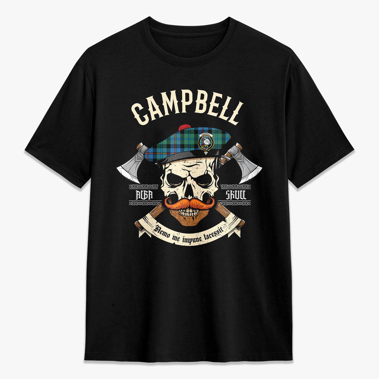 Campbell of Cawdor Ancient Tartan Crest 2D T-shirt - Alba Skull Style,