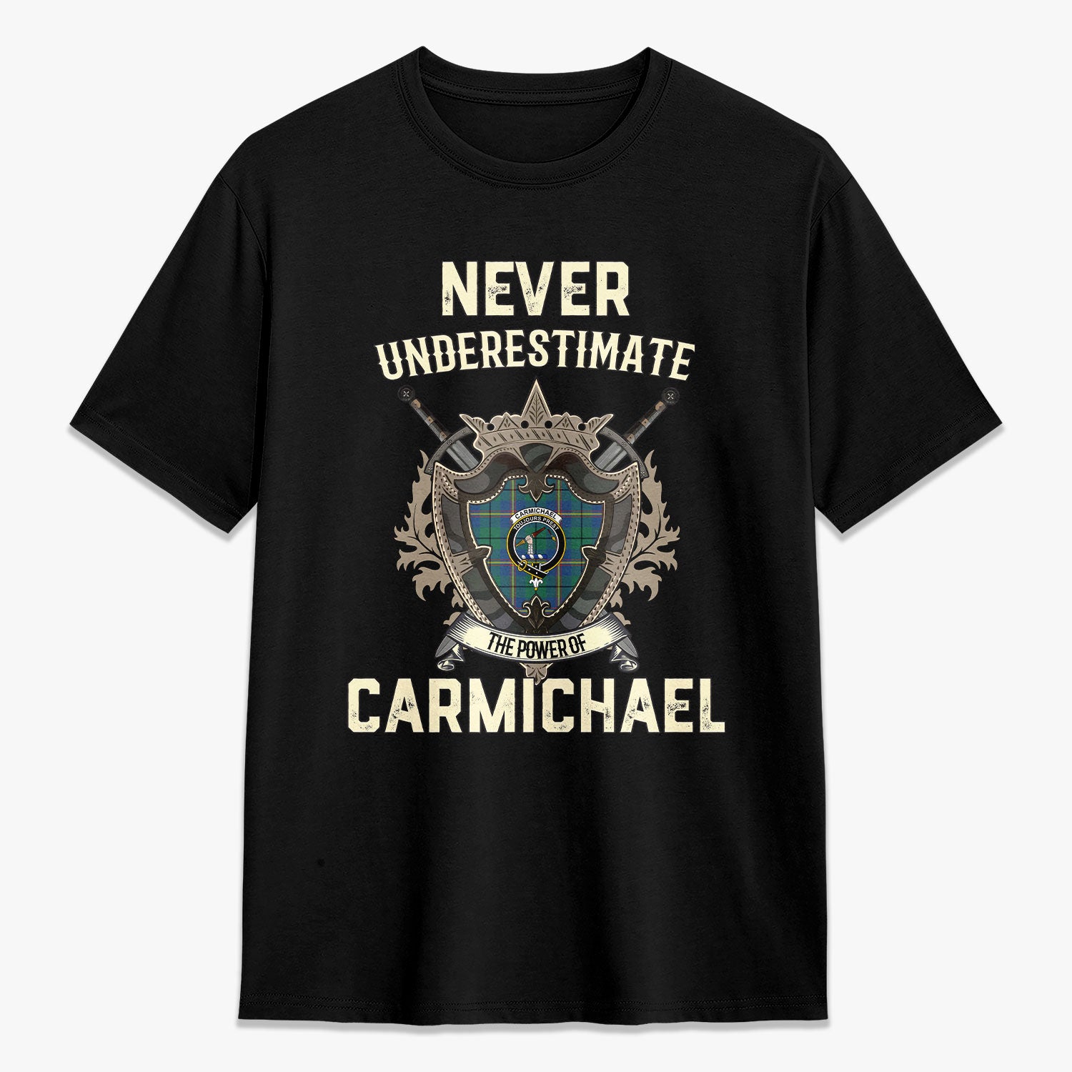 Carmichael Ancient Tartan Crest 2D T-shirt - Never Underestimate Style