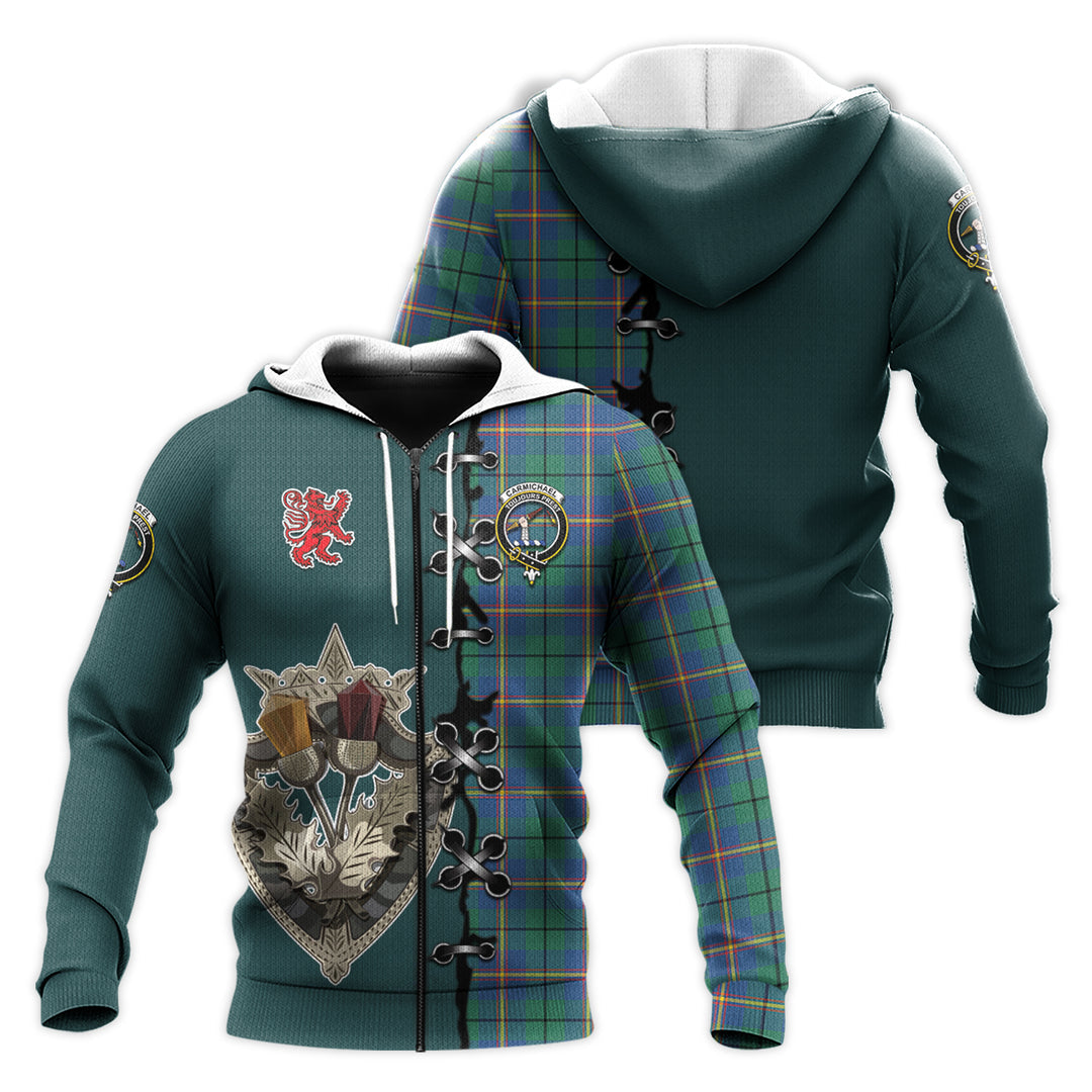 Carmichael Ancient Tartan Hoodie - Lion Rampant And Celtic Thistle Style