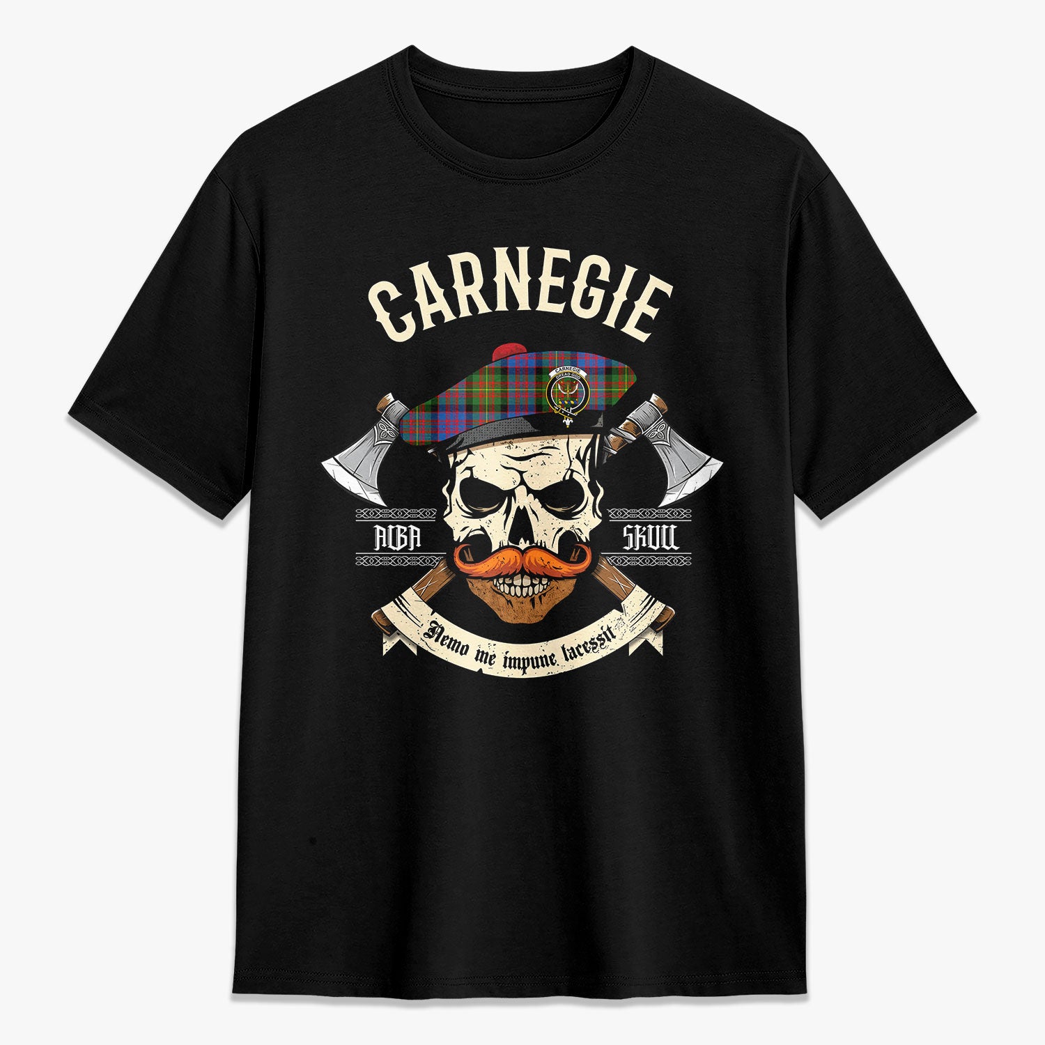 Carnegie Ancient Tartan Crest 2D T-shirt - Alba Skull Style,
