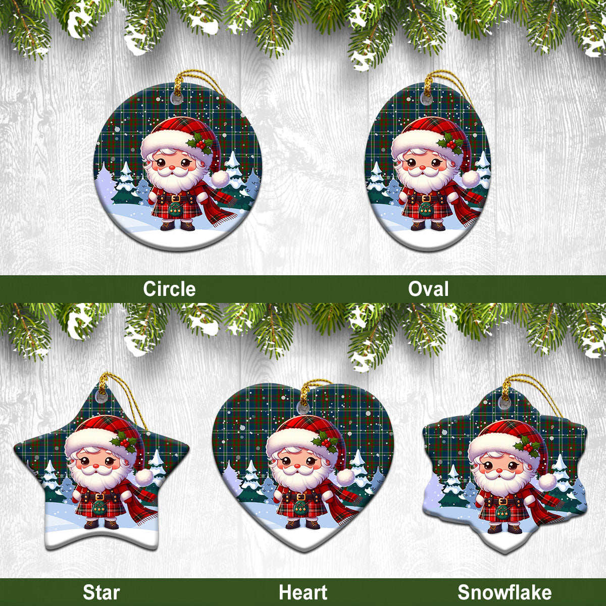 Cathcart Tartan Christmas Ceramic Ornament - Santa Claus In Kilt Style