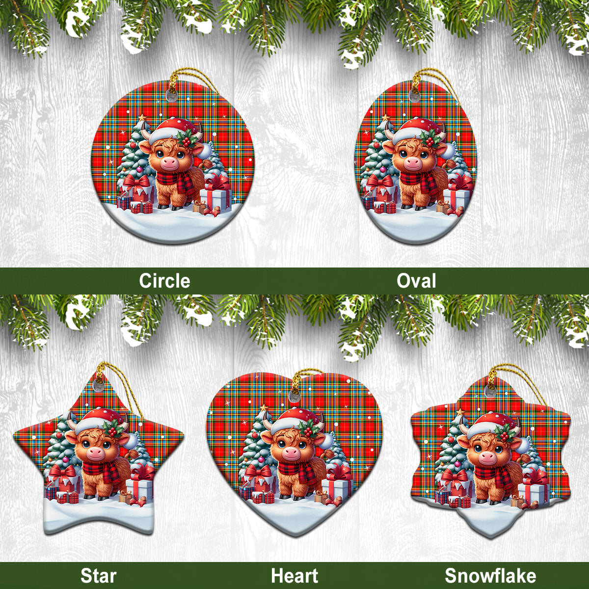 Chattan Tartan Christmas Ceramic Ornament - Highland Cow Winter Style