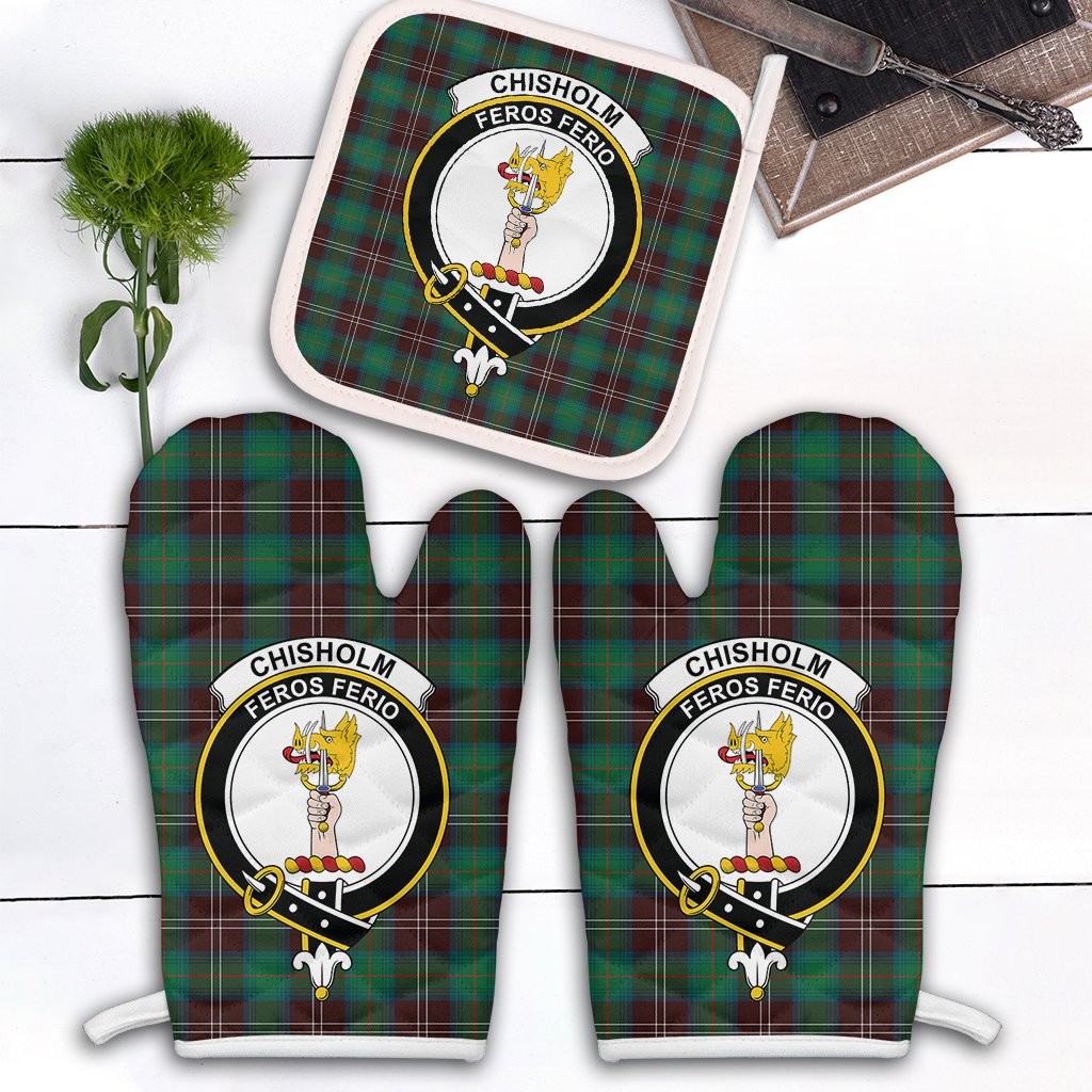 Chisholm Hunting Ancient Tartan Crest Oven Mitt And Pot Holder (2 Oven Mitts + 1 Pot Holder)