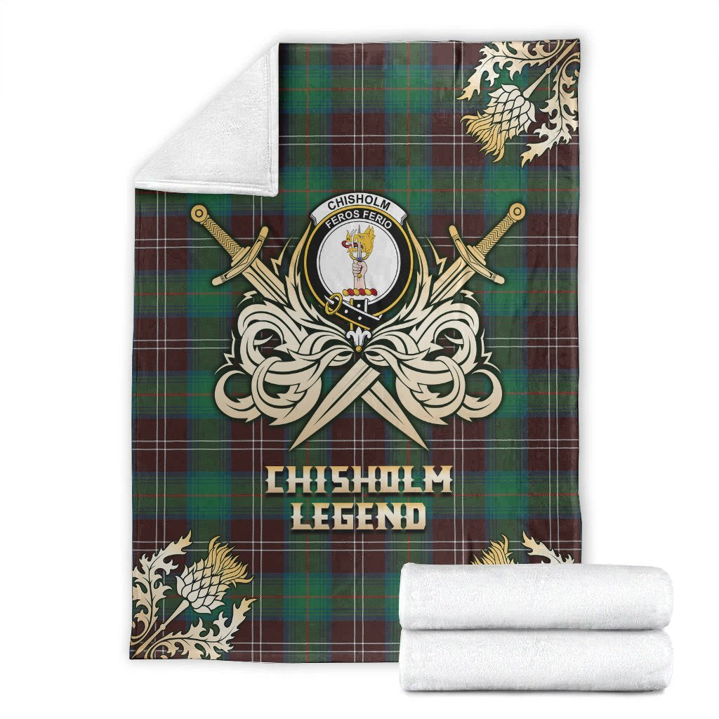 Chisholm Hunting Ancient Tartan Gold Courage Symbol Blanket