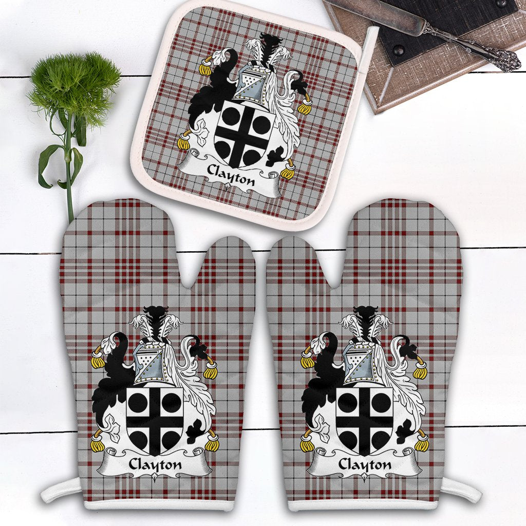 Clayton Tartan Crest Oven Mitt And Pot Holder (2 Oven Mitts + 1 Pot Holder)