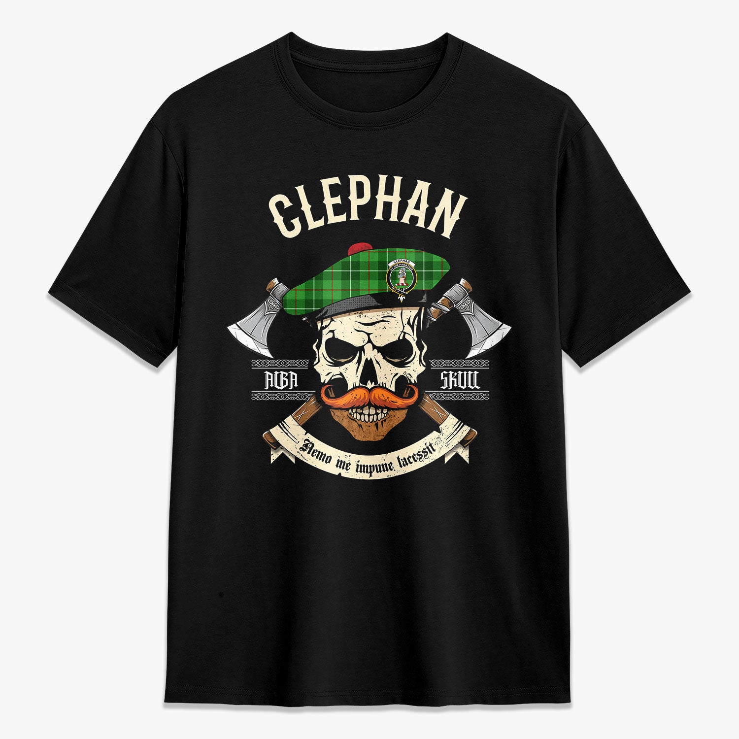 Clephan (or Clephane) Tartan Crest 2D T-shirt - Alba Skull Style,