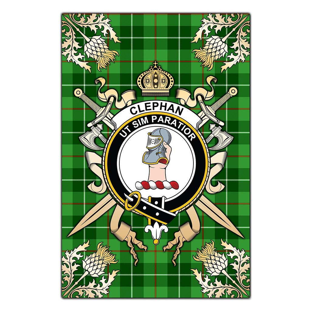 Clephane Tartan Crest Black Garden Flag - Gold Thistle Style