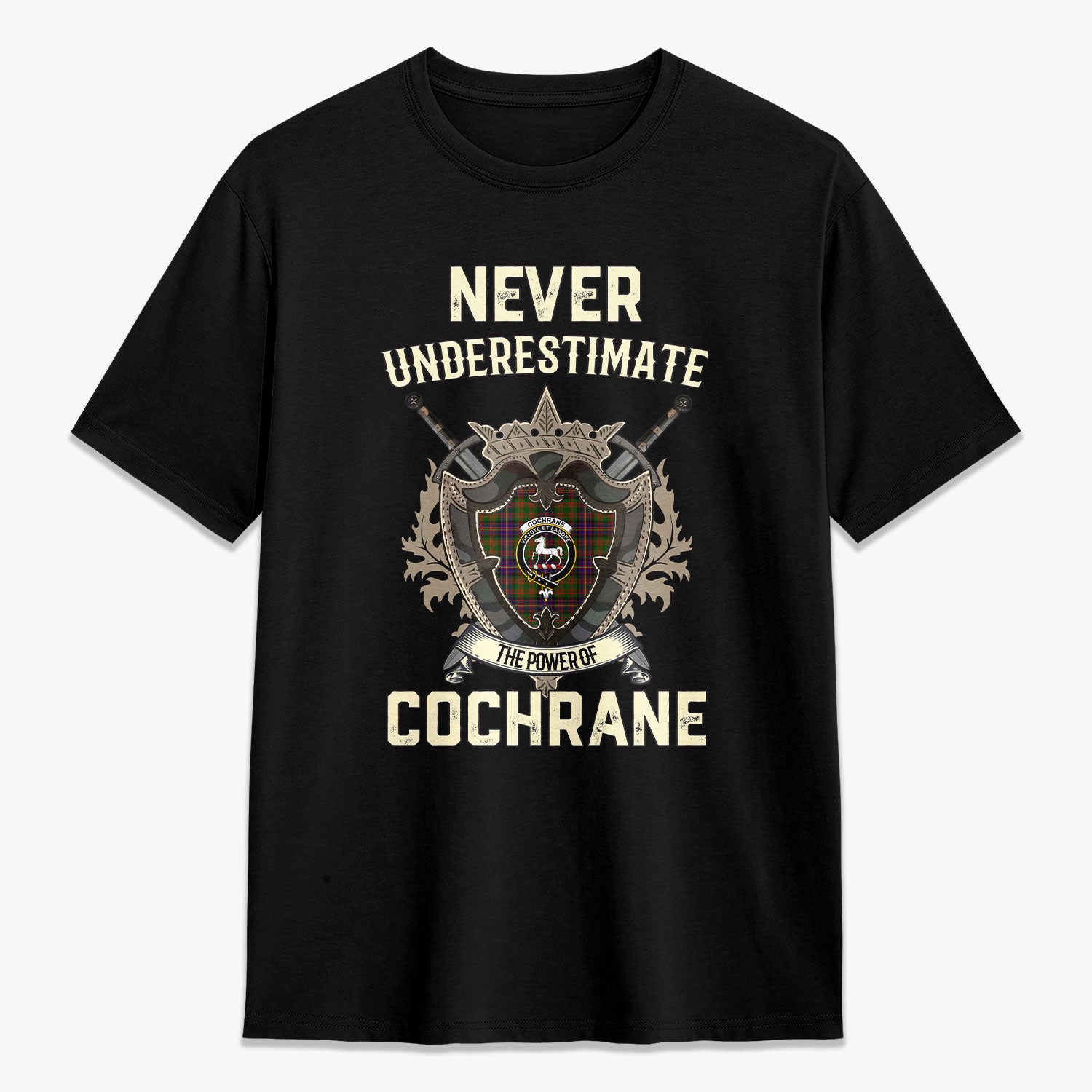Cochrane Modern Tartan Crest 2D T-shirt - Never Underestimate Style