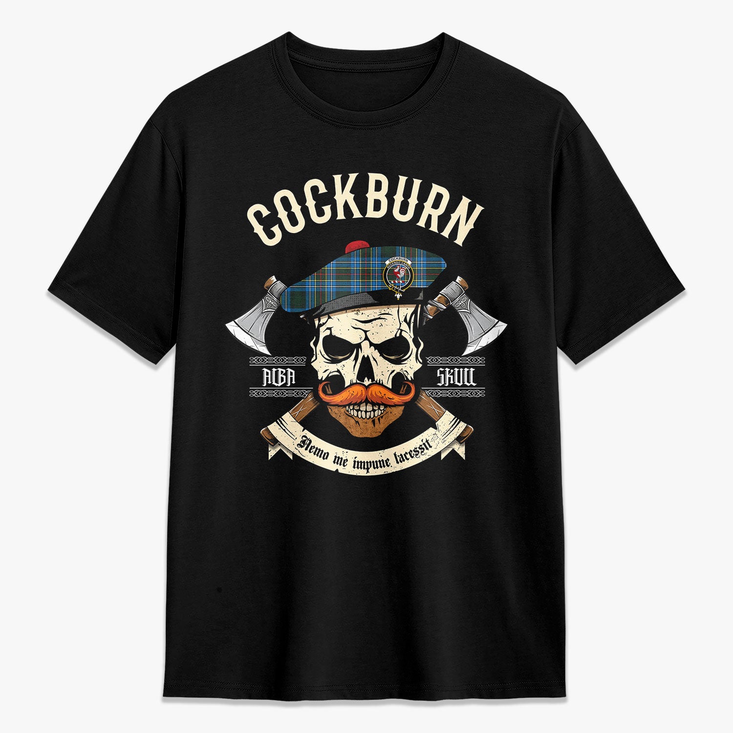 Cockburn Modern Tartan Crest 2D T-shirt - Alba Skull Style,