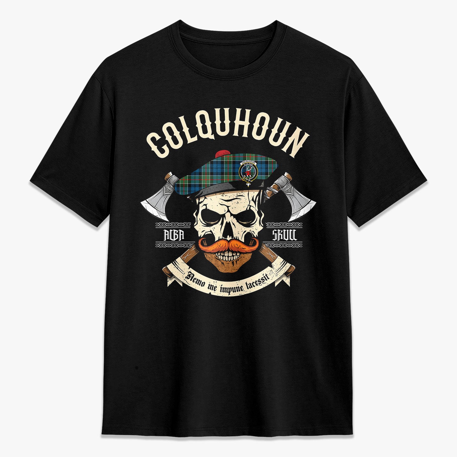 Colquhoun Ancient Tartan Crest 2D T-shirt - Alba Skull Style,