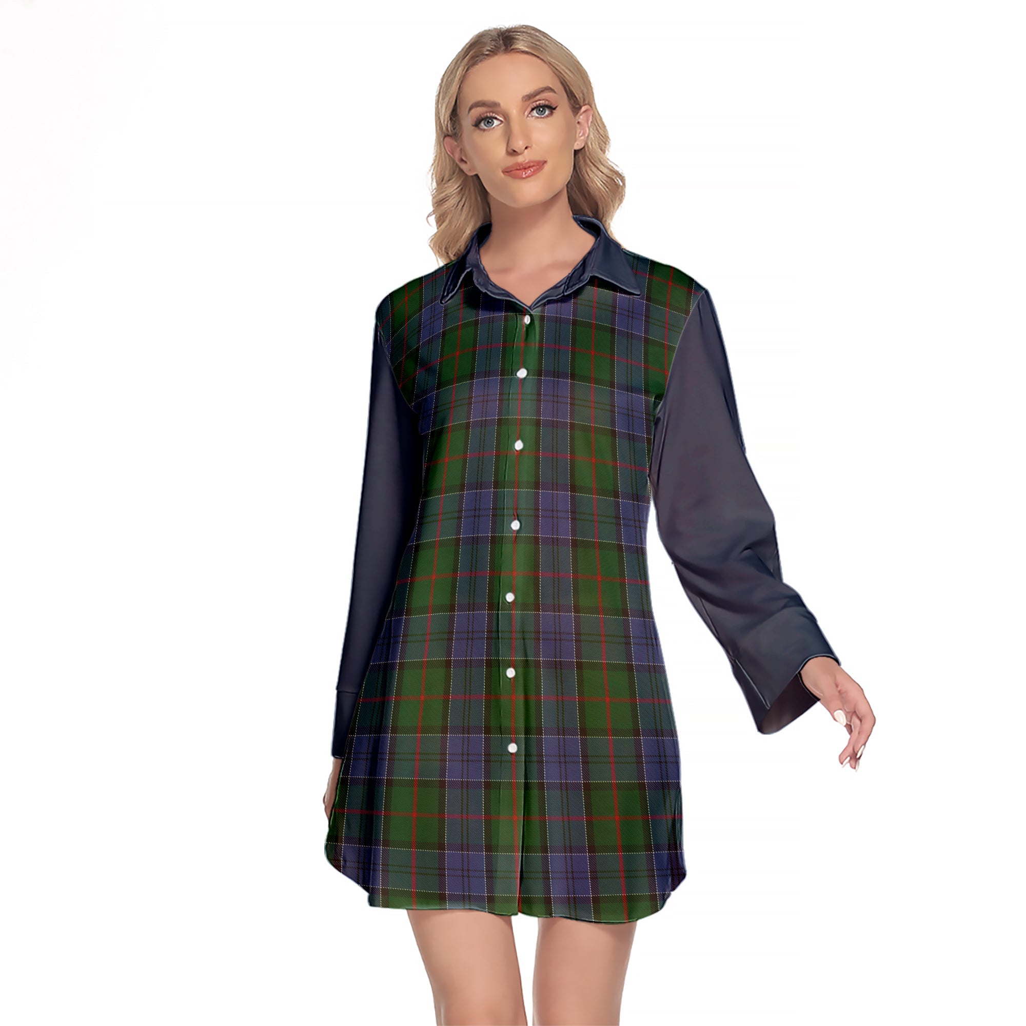 Colquhoun Tartan Women's Lapel Shirt Dress With Long Sleeve