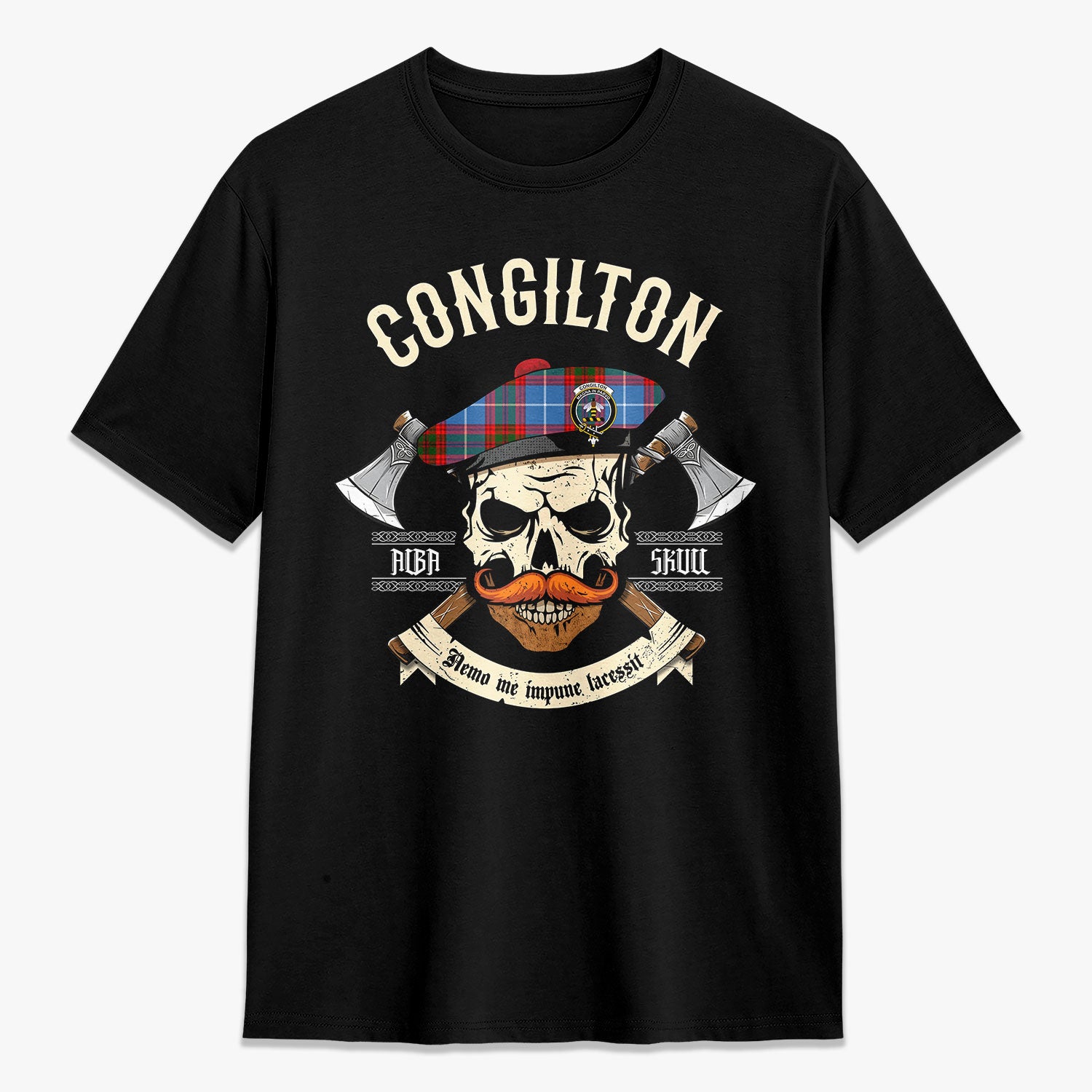 Congilton Tartan Crest 2D T-shirt - Alba Skull Style,