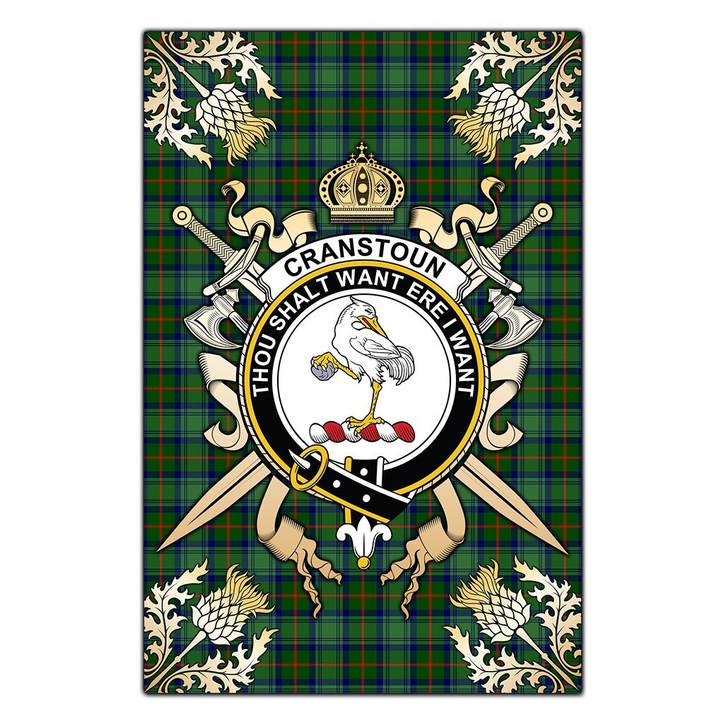 Cranstoun Tartan Crest Black Garden Flag - Gold Thistle Style