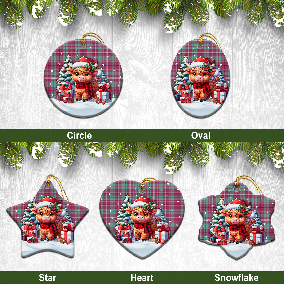 Crawford Ancient Tartan Christmas Ceramic Ornament - Highland Cow Winter Style
