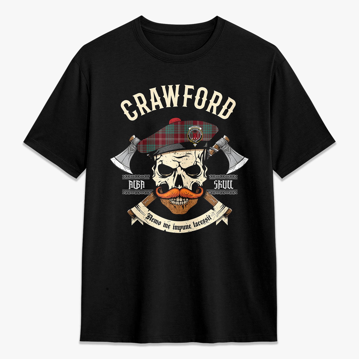 Crawford Modern Tartan Crest 2D T-shirt - Alba Skull Style,