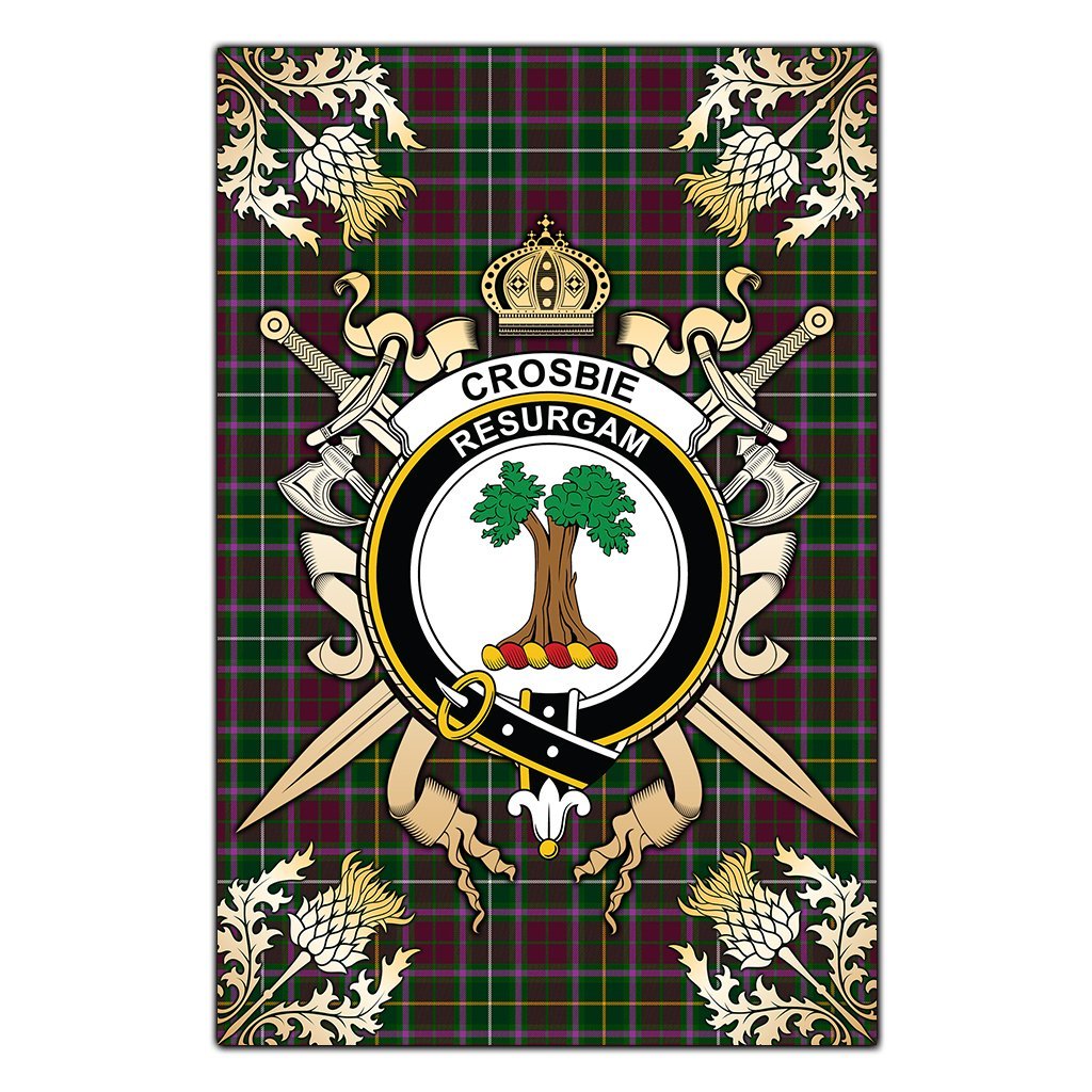 Crosbie Tartan Crest Black Garden Flag - Gold Thistle Style