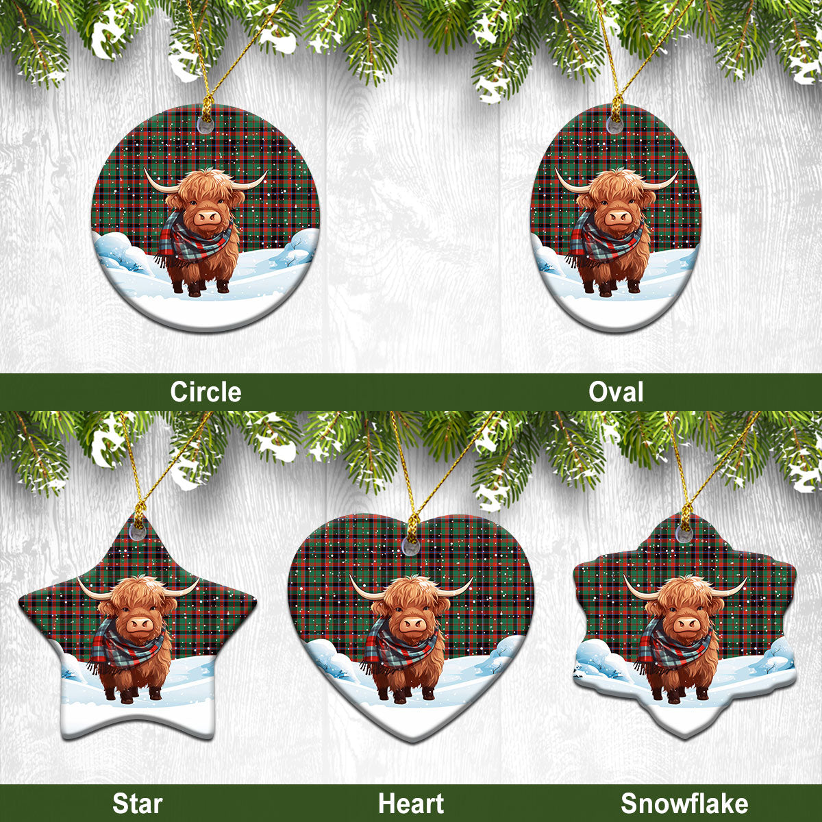Cumming Hunting Ancient Tartan Christmas Ceramic Ornament - Highland Cows Snow Style