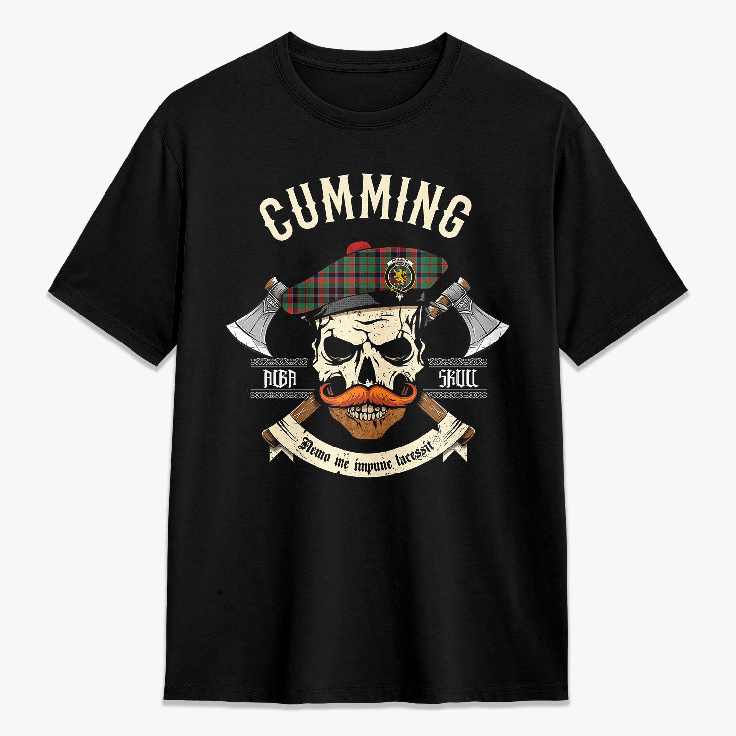 Cumming Hunting Ancient Tartan Crest 2D T-shirt - Alba Skull Style,