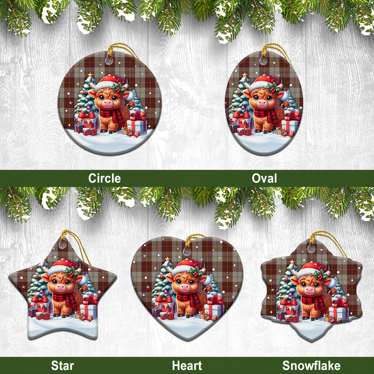 Cunningham Burgundy Dancers Tartan Christmas Ceramic Ornament - Highland Cow Winter Style