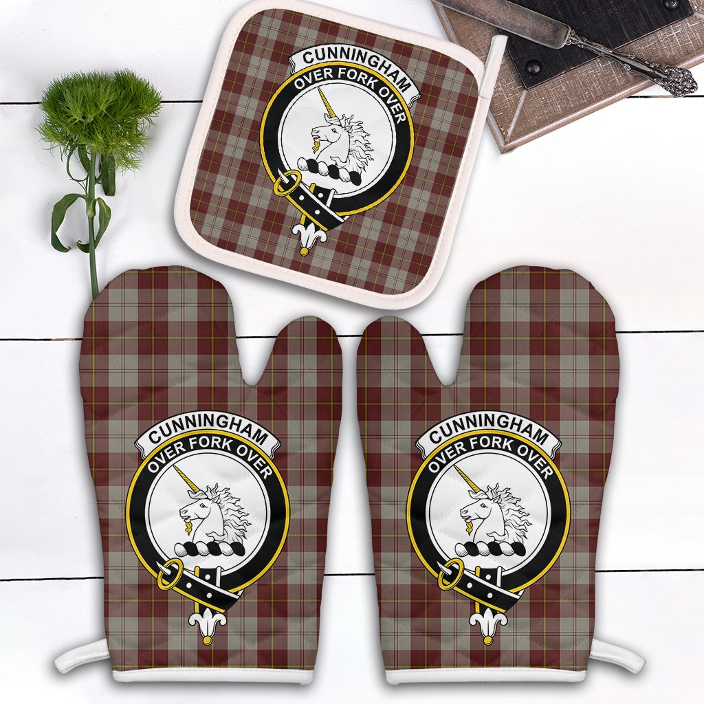 Cunningham Burgundy Dancers Tartan Crest Oven Mitt And Pot Holder (2 Oven Mitts + 1 Pot Holder)