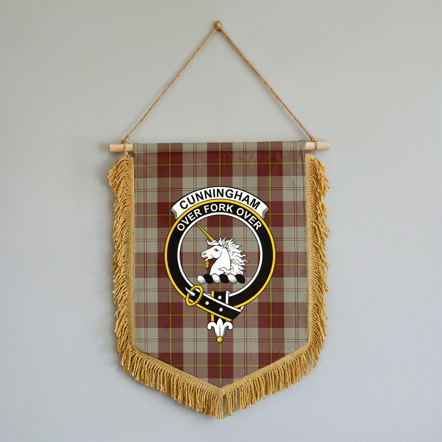 Cunningham Burgundy Dancers Tartan Crest Wall Hanging Banner - Wood Pole
