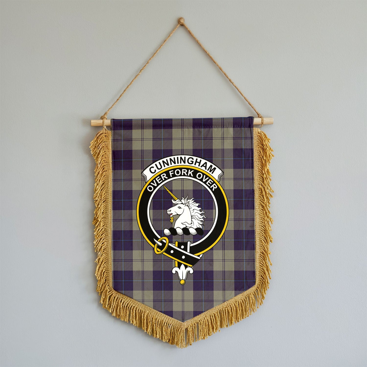 Cunningham Dress Blue Dancers Tartan Crest Wall Hanging Banner - Wood Pole