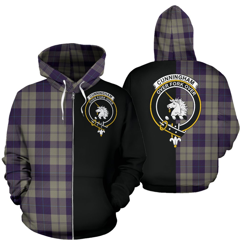 Cunningham Dress Blue Dancers Tartan Crest Zipper Hoodie - Half Of Me Style