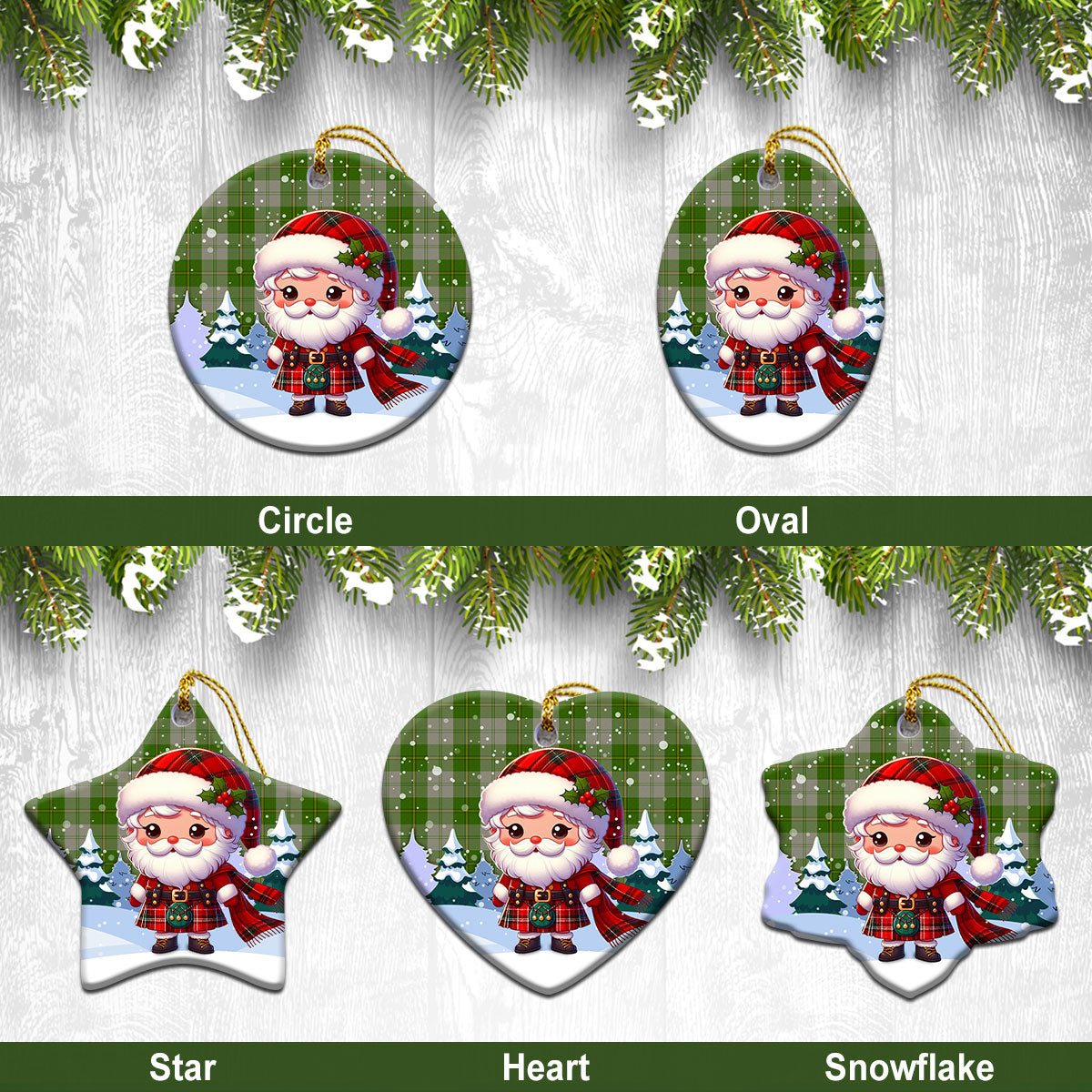 Cunningham Dress Green Dancers Tartan Christmas Ceramic Ornament - Santa Claus In Kilt Style