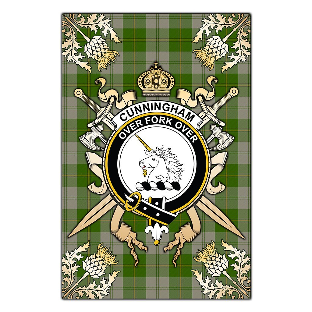 Cunningham Dress Green Dancers Tartan Crest Black Garden Flag - Gold Thistle Style