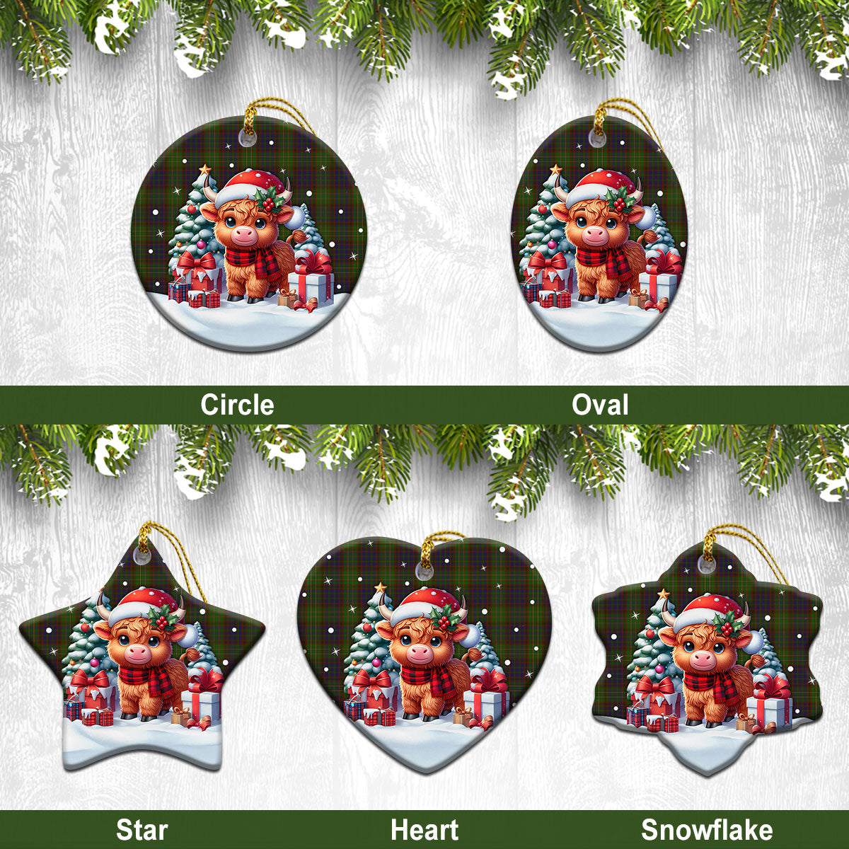 Cunningham Hunting Modern Tartan Christmas Ceramic Ornament - Highland Cow Winter Style