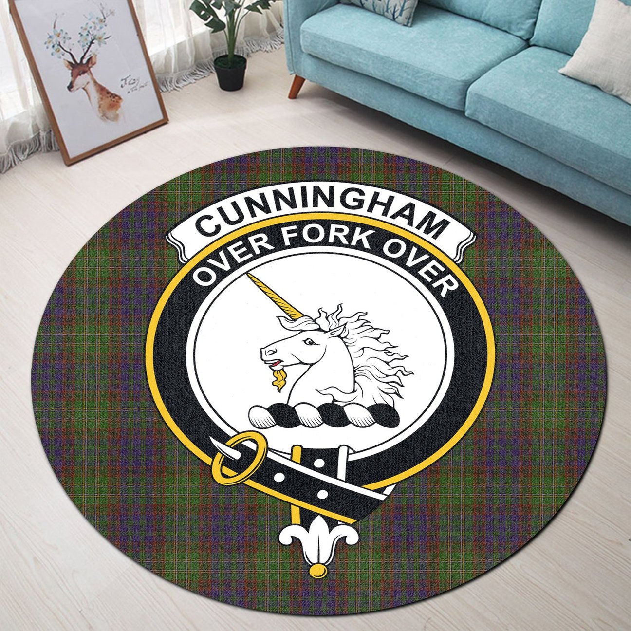 Cunningham Hunting Modern Tartan Crest Round Rug