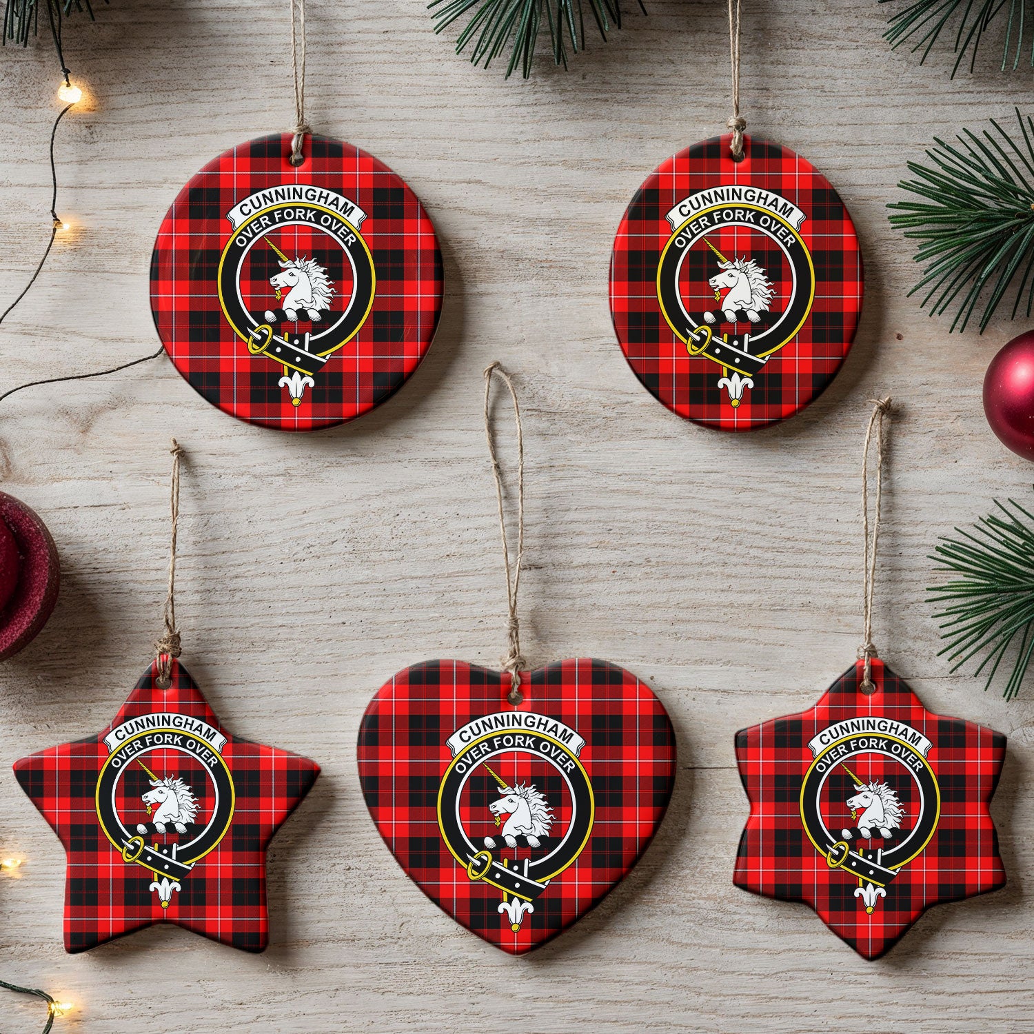 Cunningham Modern Tartan Crest Christmas Ceramic Ornament