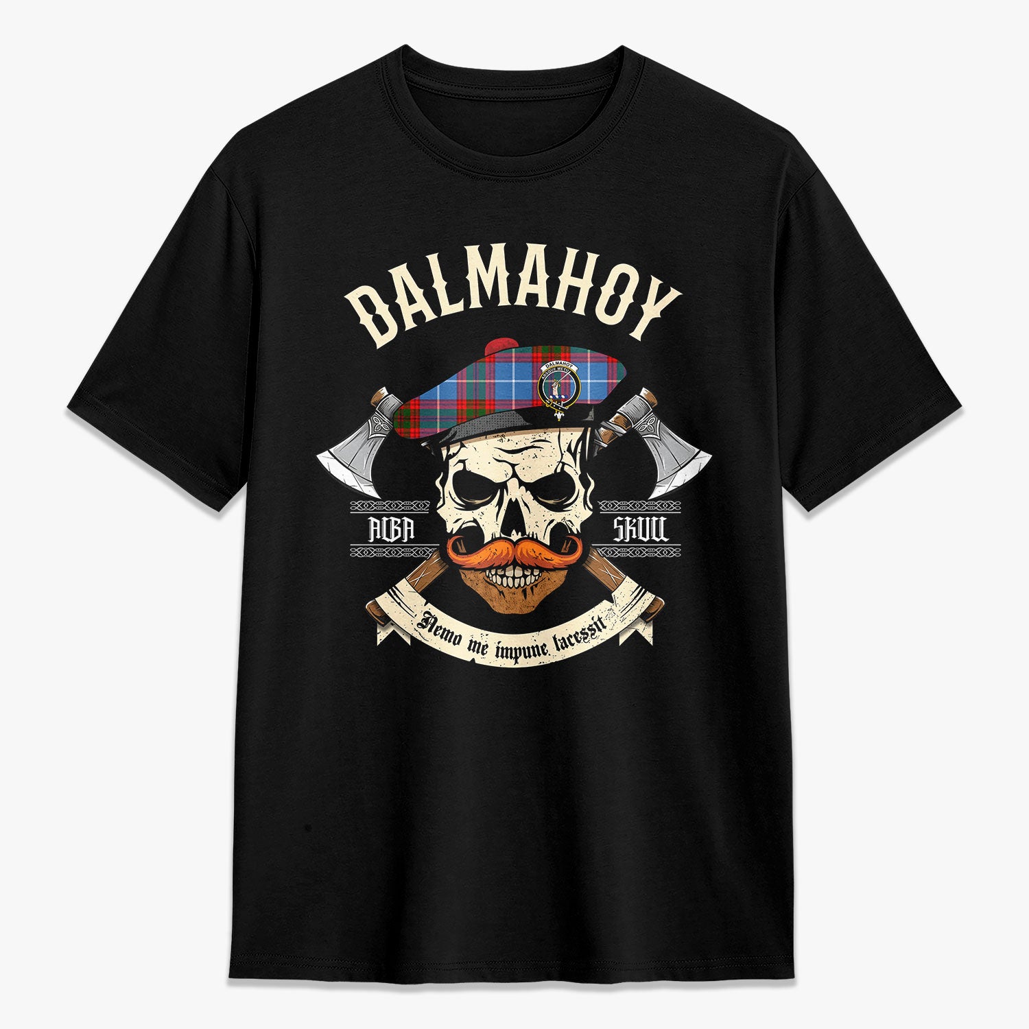 Dalmahoy Tartan Crest 2D T-shirt - Alba Skull Style,