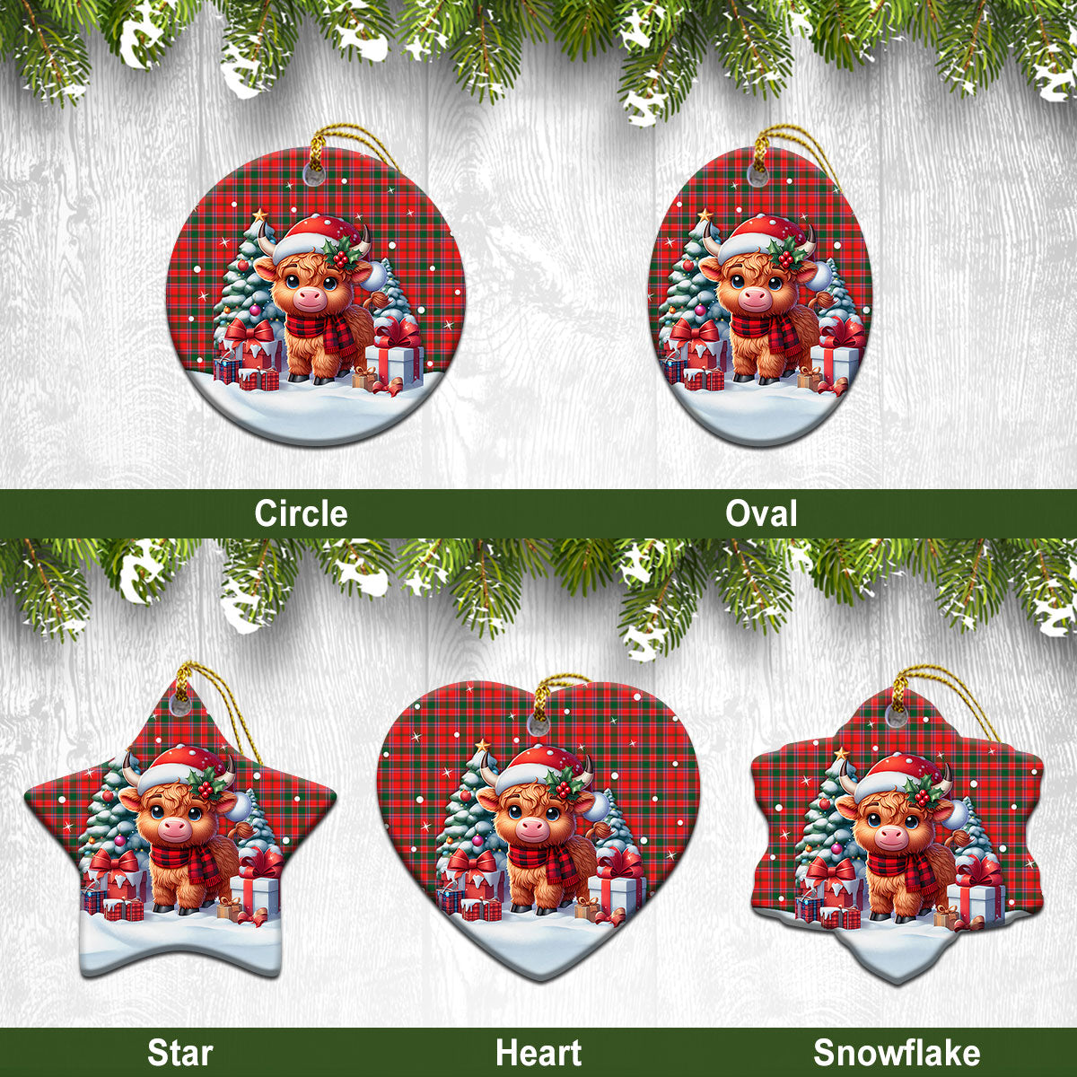 Dalziel Modern Tartan Christmas Ceramic Ornament - Highland Cow Winter Style