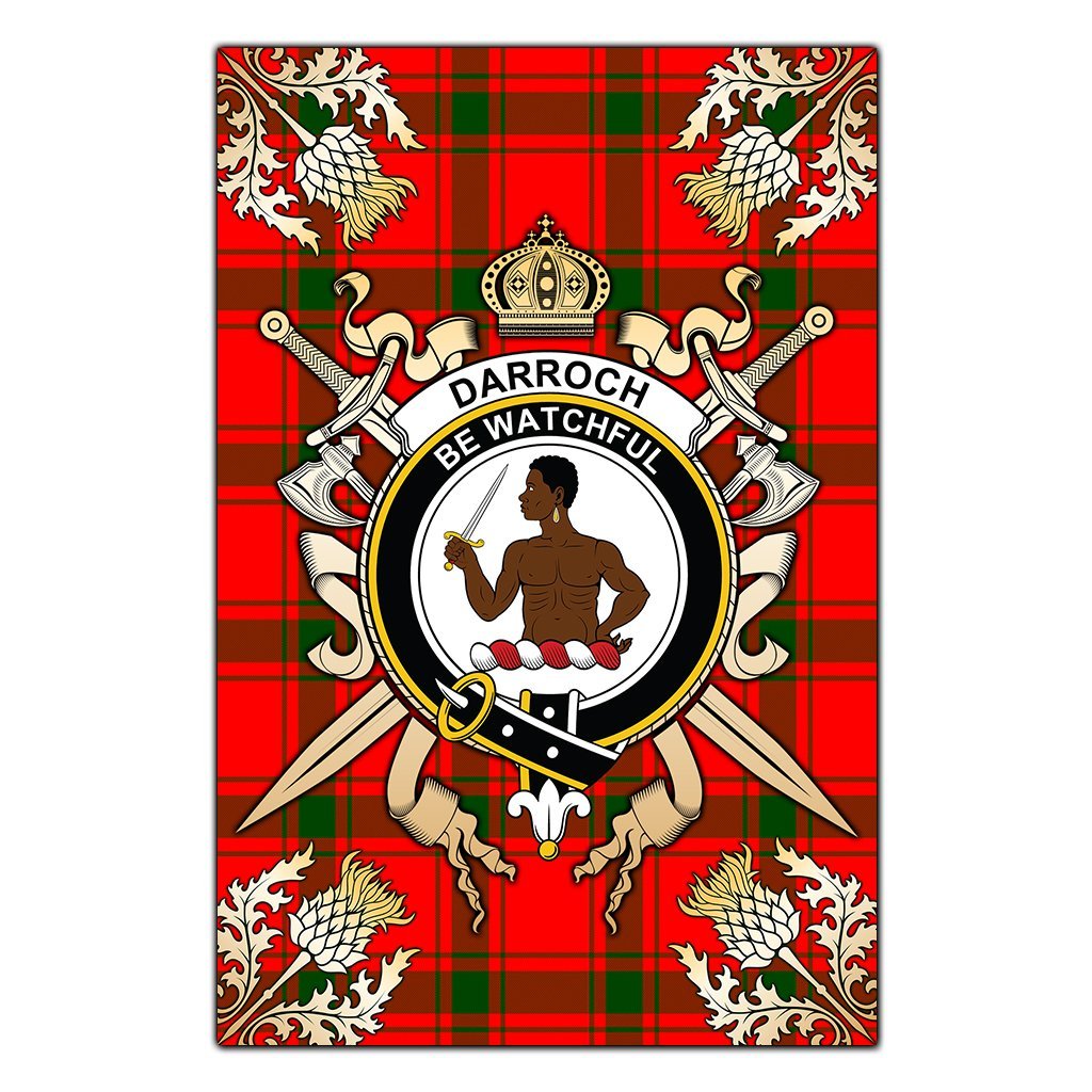 Darroch Tartan Crest Black Garden Flag - Gold Thistle Style