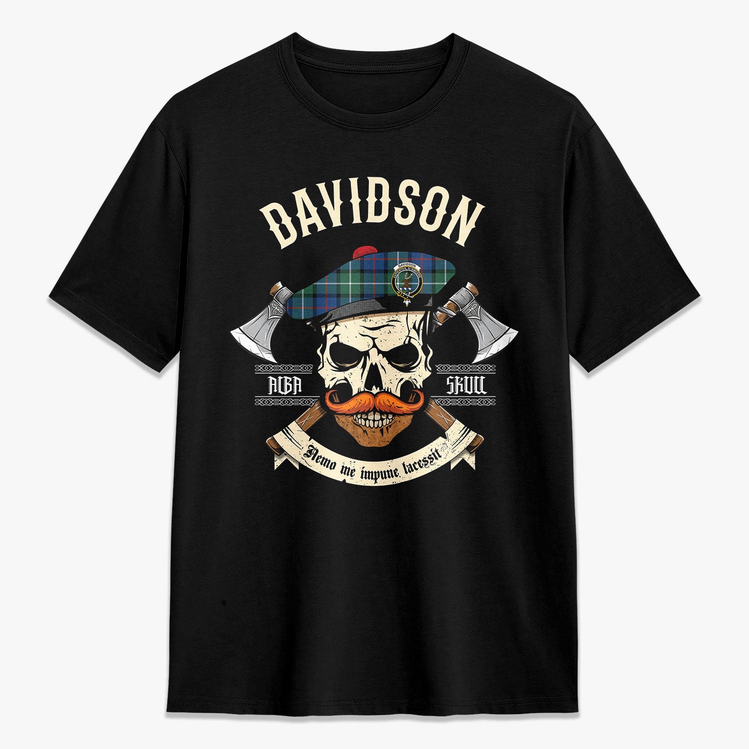 Davidson of Tulloch Tartan Crest 2D T-shirt - Alba Skull Style