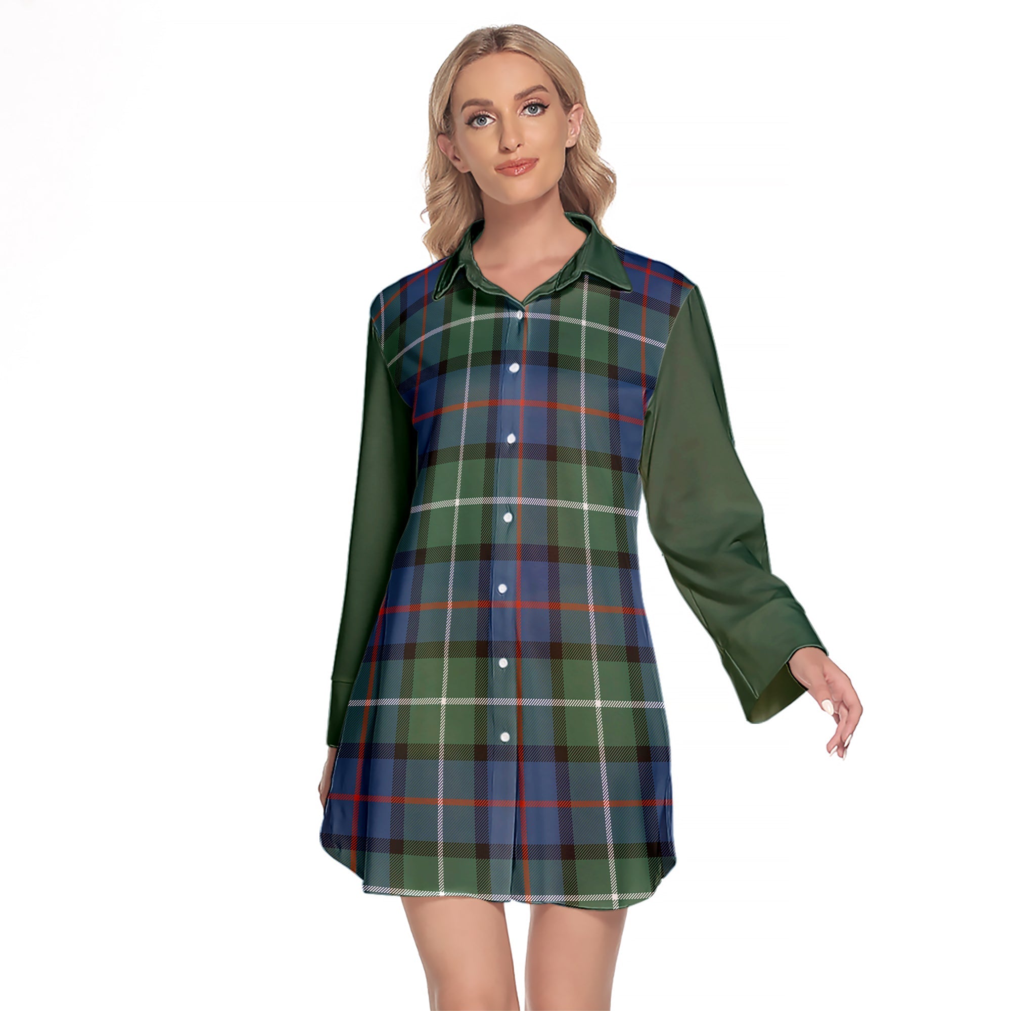 Davidson Of Tulloch Tartan Women's Lapel Shirt Dress With Long Sleeve