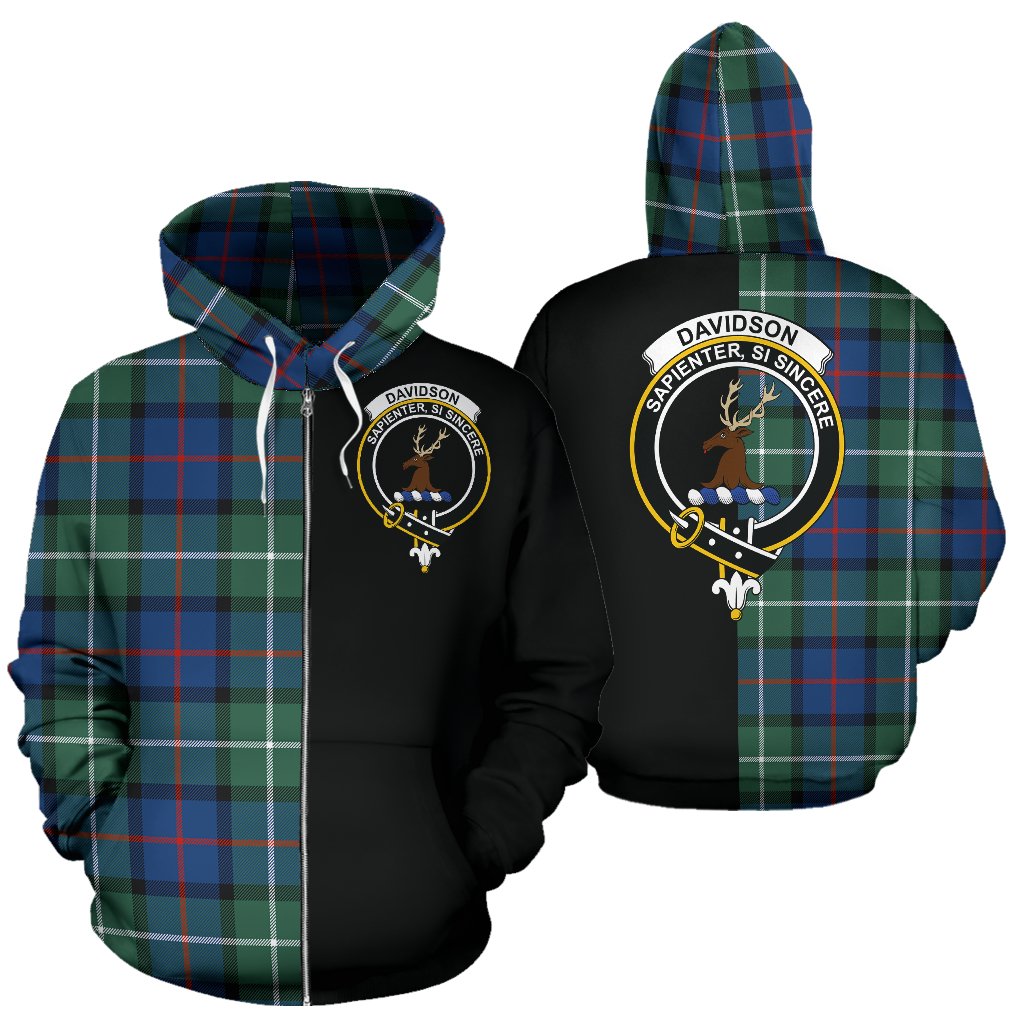 Davidson of Tulloch Tartan Crest Zipper Hoodie - Half Of Me Style