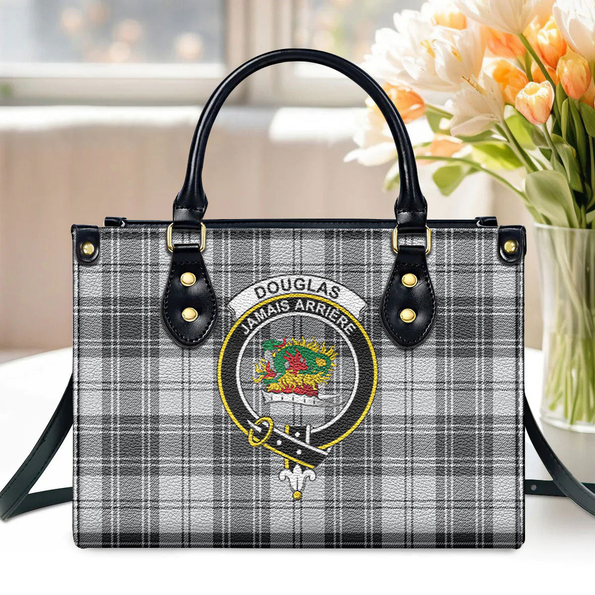 Douglas Grey Modern Tartan Crest Leather Handbag