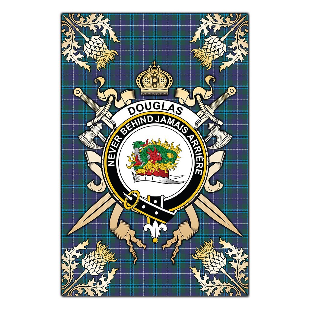 Douglas Modern Tartan Crest Black Garden Flag - Gold Thistle Style